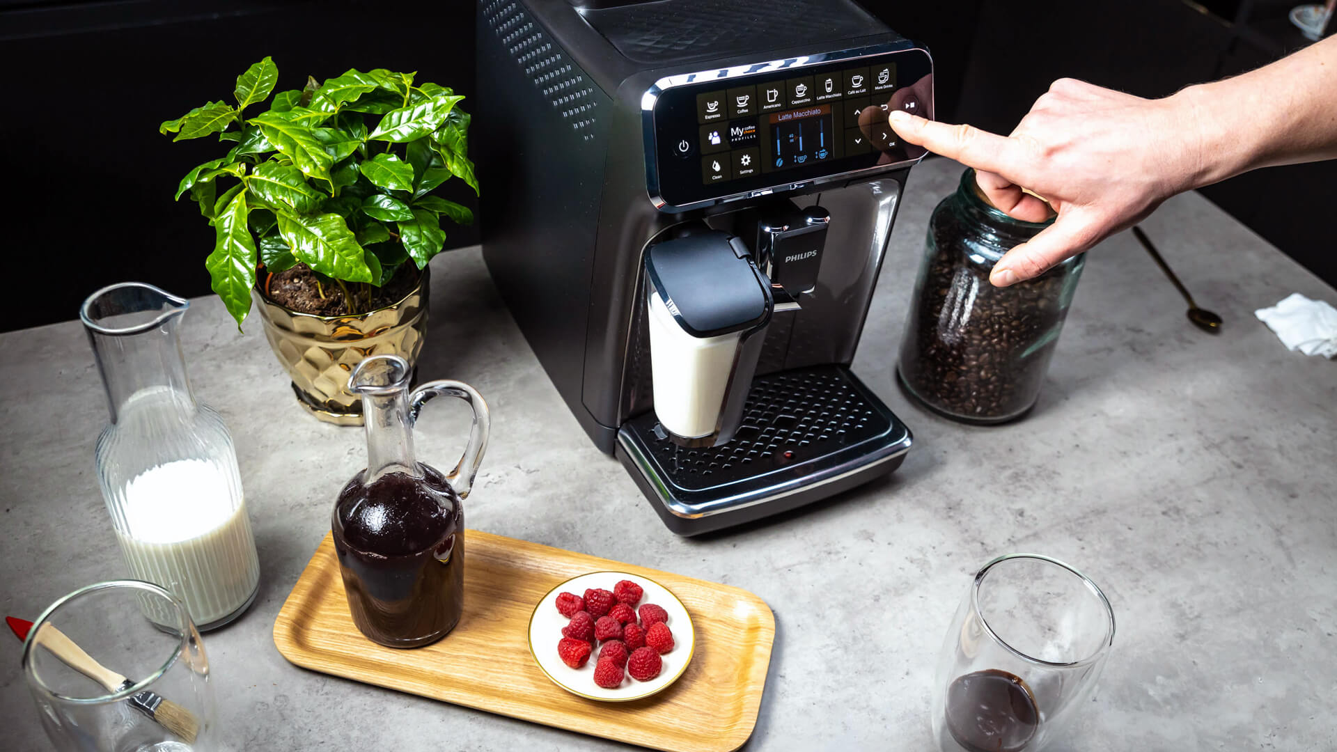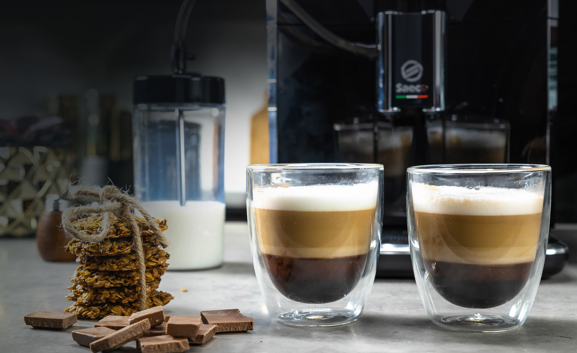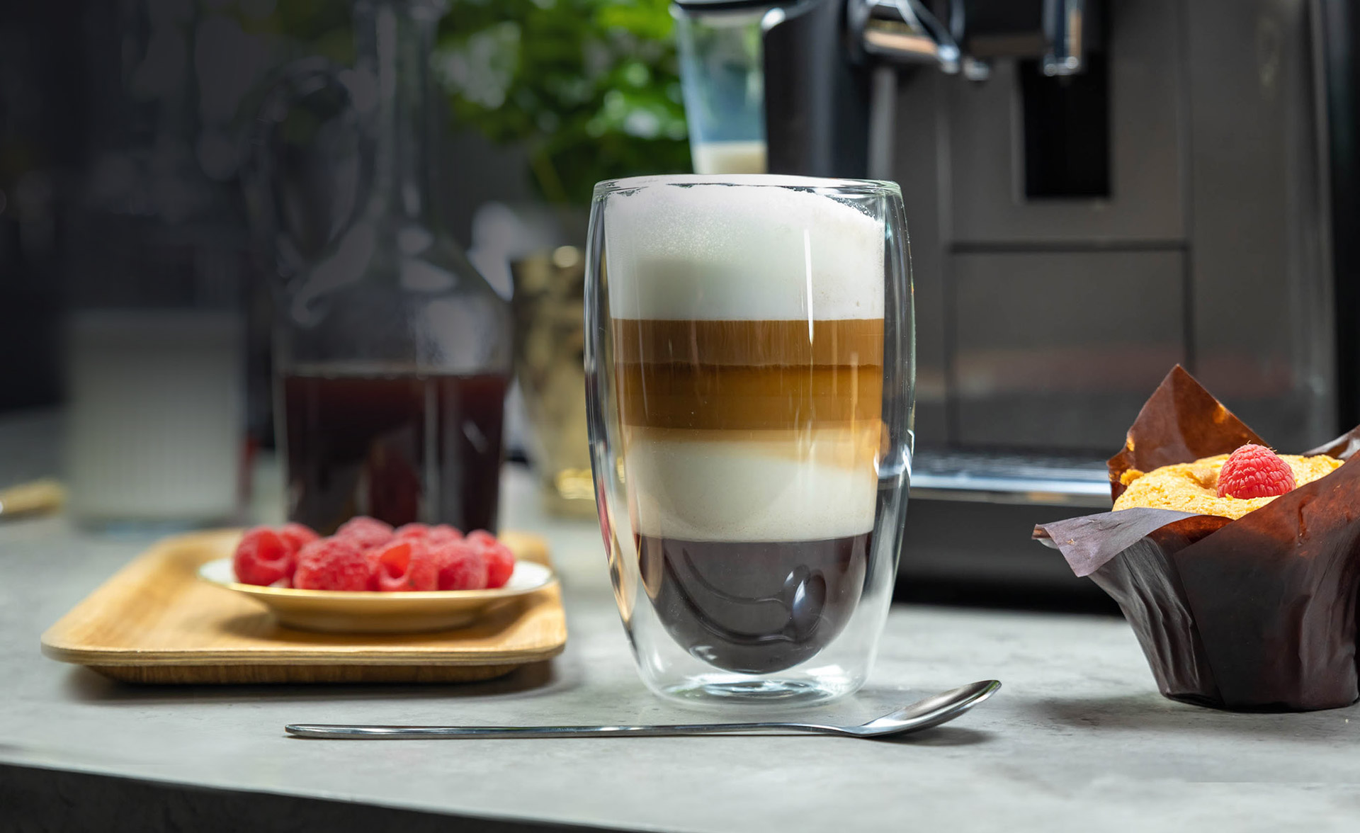 Gaminimas: Į mėgstamo puodelio apačią dėkite šokoladą ir pilkite aviečių sirupą. Tada puodelį pritraukite prie kavos gaminimo aparato ir paruoškite latte macchiato. Kavą galite papuošti šokoladiniu užpilu arba ištirpintu šokoladu. Skanaus!