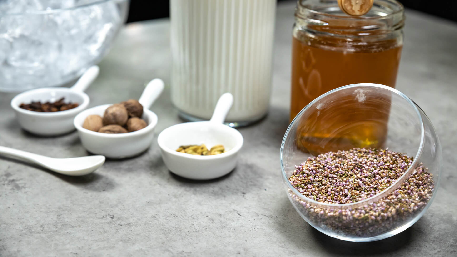Sudedamosios dalys: - 1 stiklinė 100 % obuolių sulčių - ½ stiklinės rudojo cukraus - 1 šaukštelis citrinų sulčių - 3–4 gvazdikėliai - ¼ šaukštelio muskato riešuto - žiupsnelis kardamono - ½ šaukštelio vanilės ekstrakto