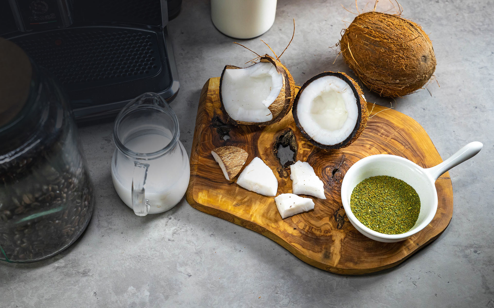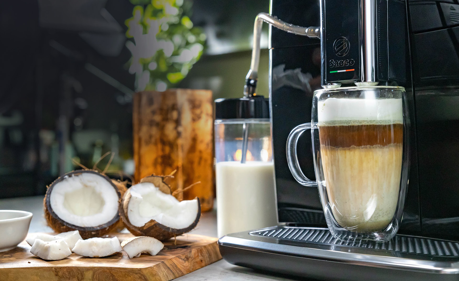 Gaminimas: Į aukštą stiklinę įpilkite kokosų sirupą, paskui suputotą pieną ir viską kruopščiai sumaišykite su matcha. Pagaliau pilkite šviežiai pagamintą dvigubą espresso. Skanaus!
