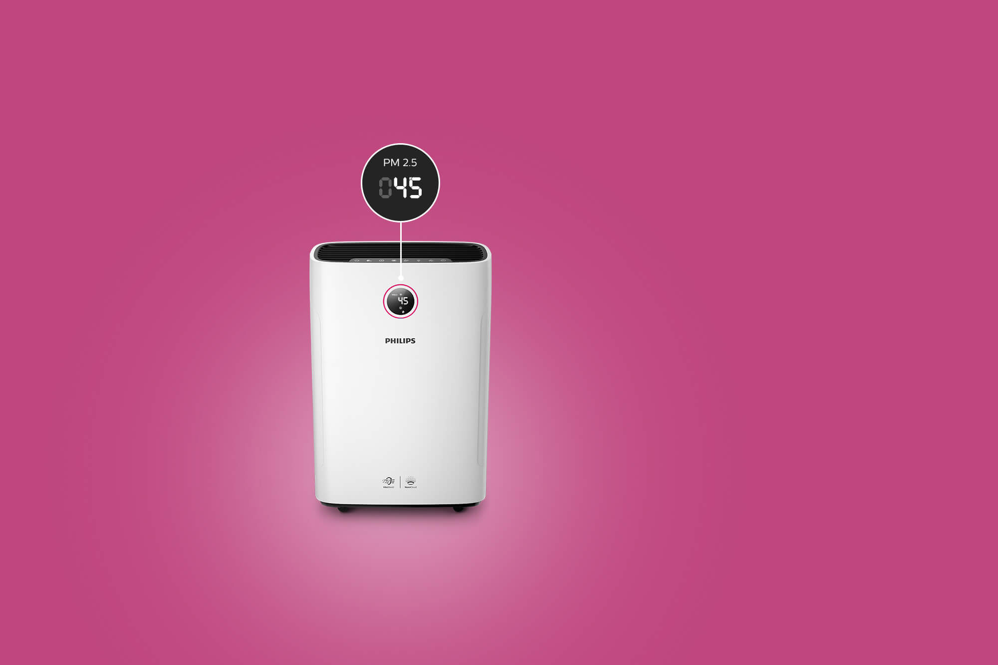 Valytuvas nurodo g/m³ esamą PM2,5 dalelių koncentraciją ore.