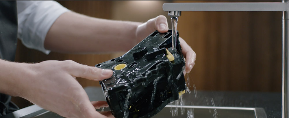 Reguliariai valydami espreso kavos aparato virimo elementus, neužkimšite sistemos kavos likučiais. Kartą per savaitę atliekamas valymas: Praskalaukite šiltu vandeniu. Kartą per mėnesį atliekamas valymas: Pašalinkite riebalus naudodami „Philips Saeco“ riebalų šalinimo tabletę CA6704.